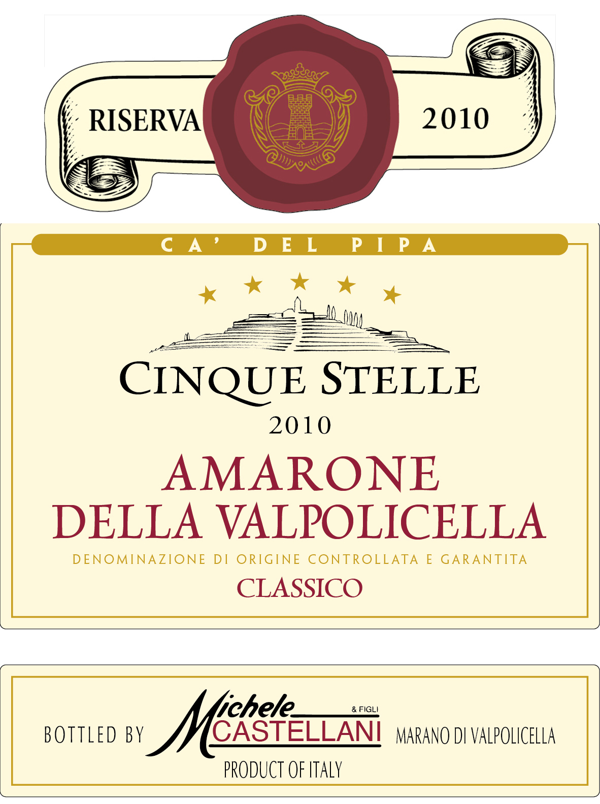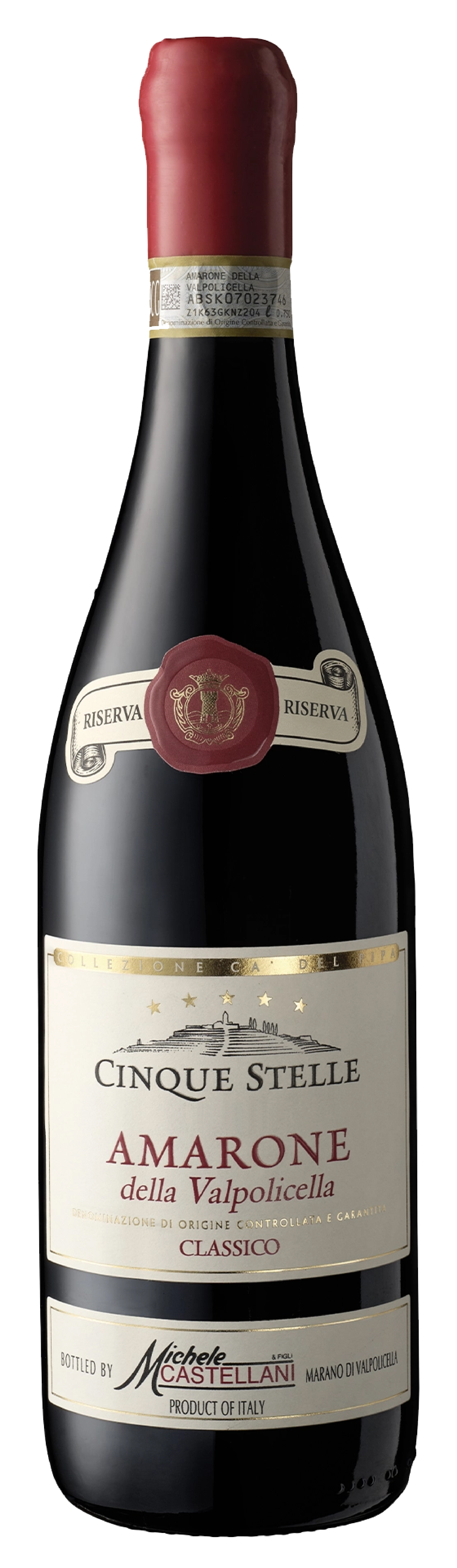 Amarone Cinque Stelle Riserva is an excellent expression of quality and refinement. This wine is produced only in the best years; the bunches are meticulously selected, harvested, and left to dry in our drying room. Important process for the concentration of sugars and the intrinsic aromas and flavors of the grapes. During fermentation, in contact with the pomace, the wine starts to be alive and during the aging period it gets its evolution, gaining body. The result is a full-bodied and harmonious wine, with a bouquet of aromas and flavors that you will be discover sip after sip. Aged 4 years in French barriques and 5 years in bottle.